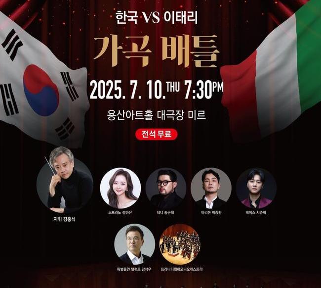 서울 용산구(구청장 박희영)가 내달 10일 오후 7시 30분 용산아트홀 대극장 미르(녹사평대로 150, 지하 2층)에서 클래식 성악 콘서트 `한국VS이태리 가곡배틀`을 개최한다.