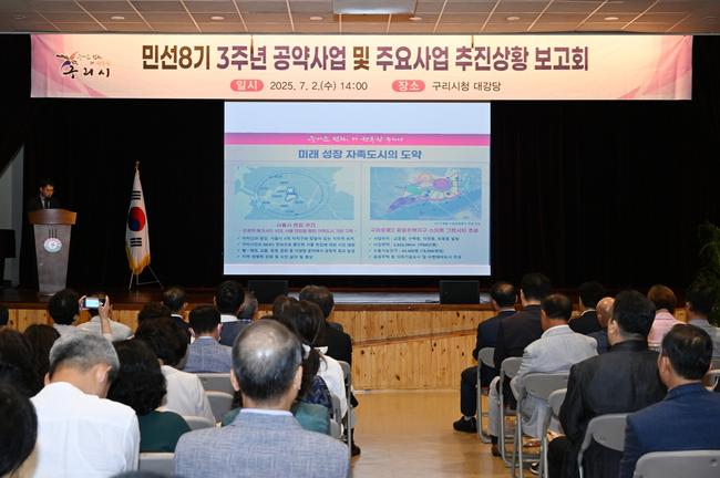 구리시(시장 백경현)는 2일 시청 대강당에서 `민선8기 3주년 공약 및 주요사업 추진상황 보고회`를 개최했다.