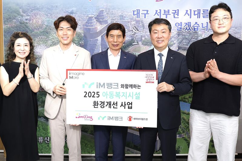 후원금 전달식은 지난 7일 달서구청에서 열렸으며, 이태훈 달서구청장을 비롯해 iM뱅크, 세이브더칠드런코리아 관계자와 수혜기관 시설장이 참석해 뜻깊은 자리를 함께했다.