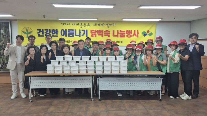이날 나눔 행사는 새마을 회원들이 직접 한약재를 넣고 정성껏 끓인 삼계탕을 100인분 포장해 관내 저소득 취약계층 어르신 세대에게 전달하는 방식으로 진행됐다.