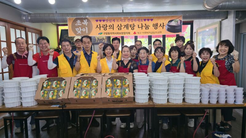 대구 북구 구암동 지역사회보장협의체(공동위원장 노연주, 장영관)는 초복을 맞아 7월 8일(화) 관내 저소득 어르신 100세대를 대상으로 삼계탕과 과일을 전달하는 따뜻한 나눔 행사를 펼쳤다.