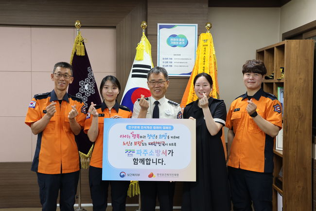 파주소방서(서장 김명찬)는 7월 10일, 인구감소와 고령화에 대한 사회적 인식을 제고하고 출산·양육 친화적 문화를 조성하기 위한 ‘인구문제 인식개선을 위한 릴레이 캠페인’에 참여했다고 밝혔다.