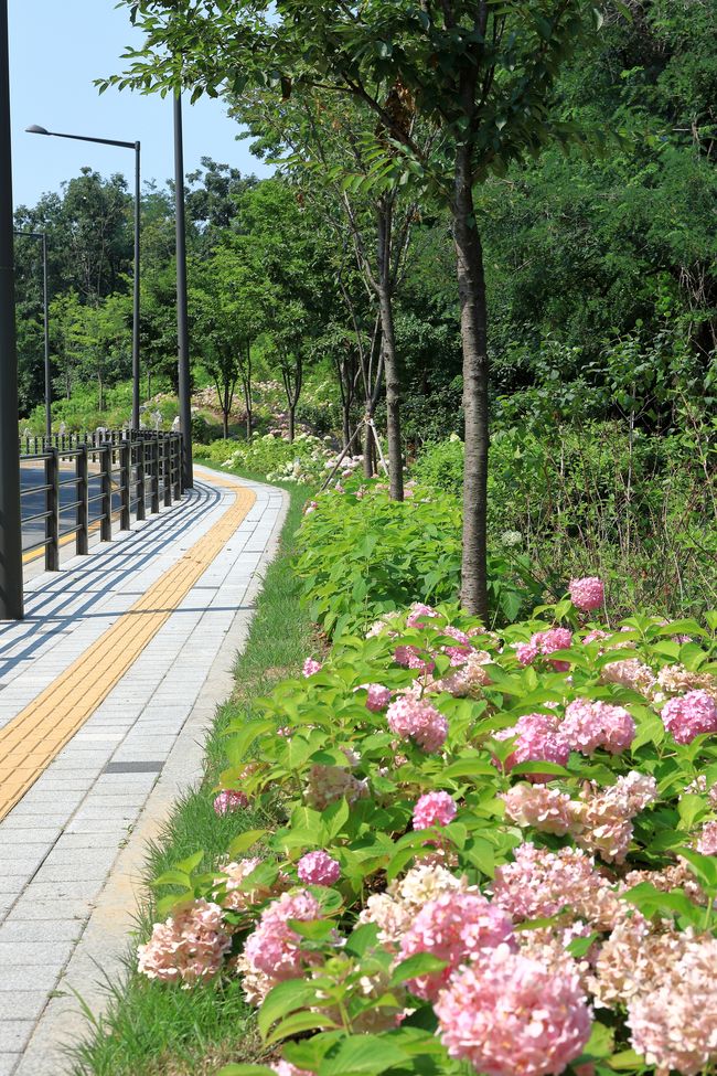 16일 성북구는 개운산 진입로 ‘개운산 수국길’이 주민들로부터 큰 호응을 얻으며 도심 속 명소로 자리잡았다고 밝혔다.성북구는 개운산 진입로 `개운산 수국길`이 주민들로부터 큰 호응을 얻고 있다.서울 성북구(구청장 이승로)는 개운산 고려대로17길 일대에 수국 1만여 주를 포함한 총 1만 3천여 본의 초화를 식재해 ‘꽃길’로 탈바꿈시켰다. 해당 구간은 도심 중심부에 위치해 접근성이 뛰어나 많은 시민이 찾는 곳이지만, 과거에는 쓰레기와 폐기물 불법 투기 문제로 몸살을 앓았다.