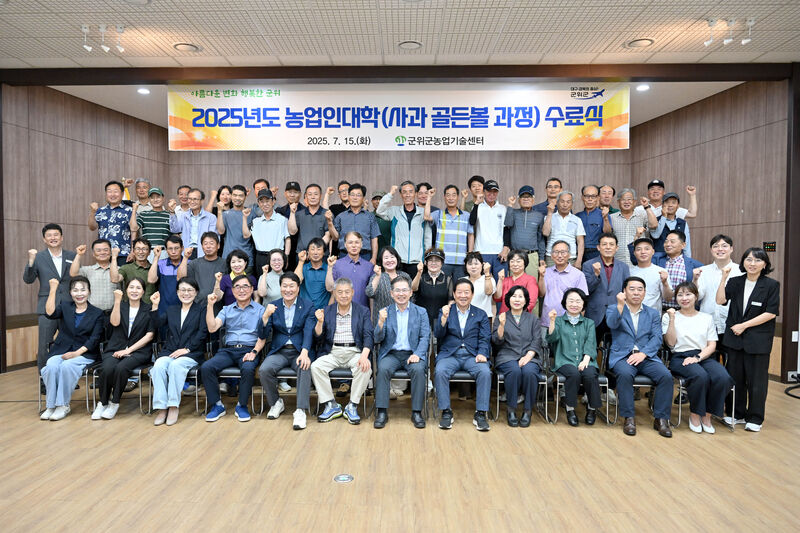 군위군은 7월 15일 농업기술센터 대강당에서 2025년도 농업인대학 사과‘골든볼’ 과정 수료식을 가졌다.