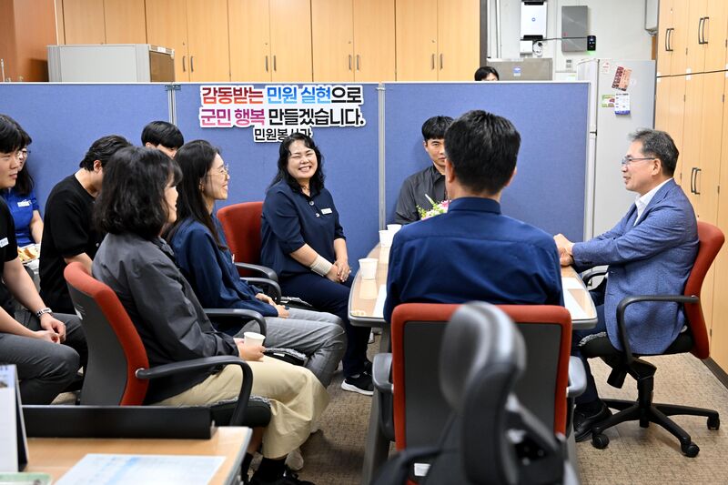이날 행사는 재무과, 민원봉사과, 인허가과, 환경과, 산림새마을과, 안전관리과, 건설교통과, 지역활력과를 대상으로 진행되었으며, 군수와 기획감사실장을 포함해 부서별 직원 15명 내외가 참석해 자유로운 분위기 속에서 대화를 나눴다.