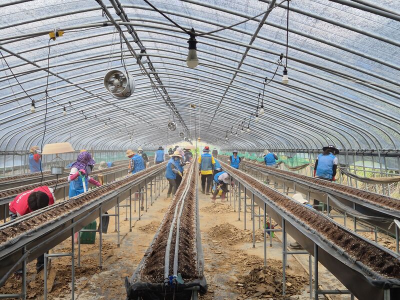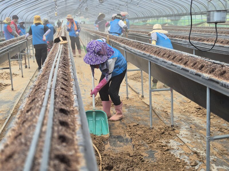 지난 26일 합천군 수해복구 지원활동에 참여한 달성군자원봉사센터 봉사자. 비닐하우스 내 진흙을 제거 중인 모습. 달성공 제공.