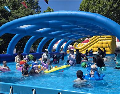 물놀이장 내부에는 조립식 풀장과 분수 터널, 워터슬라이드 등 아이들을 위한 다양한 물놀이 시설이 마련됐고, 여기에 버블쇼, 친환경 거품 분사 프로그램 등도 함께 운영된다. 더불어 평상과 에어쿨존, 푸드트럭 등의 편의시설도 함께 제공돼 가족 단위 방문객이 쾌적하게 즐길 수 있도록 조성됐다.