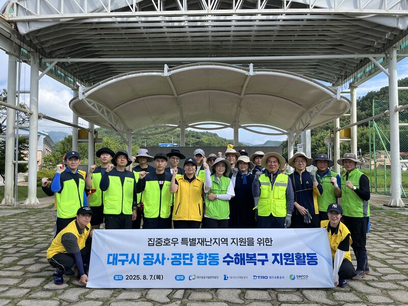 이번 지원활동은 대구시 산하 4개 공사·공단이 협력해 특별재난지역으로 선포된 피해지역의 조속한 복구와 주민들의 일상 회복을 돕기 위해 마련됐다. 이날 대구도시개발공사를 비롯해 대구공공시설관리공단, 대구교통공사, 대구농수산물유통공사 등 4개 기관 임직원 20여 명이 참여해 토사물 제거, 배수로 정비, 집기류 정리 등 현장 복구 작업에 구슬땀을 흘렸다.