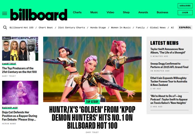 애니메이션 `케이팝 데몬 헌터스`는 퇴마사 K팝 걸그룹 헌트릭스가 악령 K팝 보이그룹 사자보이스를 물리치는 이야기를 담고 있다. 헌트릭스는 무당, 사자보이스는 저승사자를 모티브로 했다. 흥미롭게도 사자보이스의 `유어 아이돌` 역시 이번 주 `핫100` 8위에 오르며 7주 연속 톱10에 진입했다.