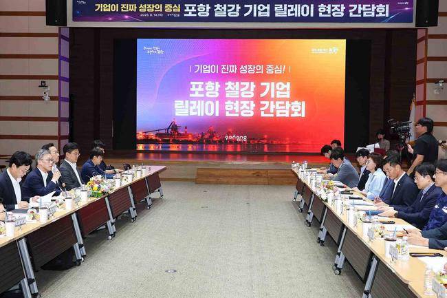오승철 산업통상자원부 산업기반실장은 지난 14일 오후 포항 남구 포항시청에서 열린 「포항 철강 기업 릴레이 현장 간담회」에 참석, 인사말을 하고 있다.