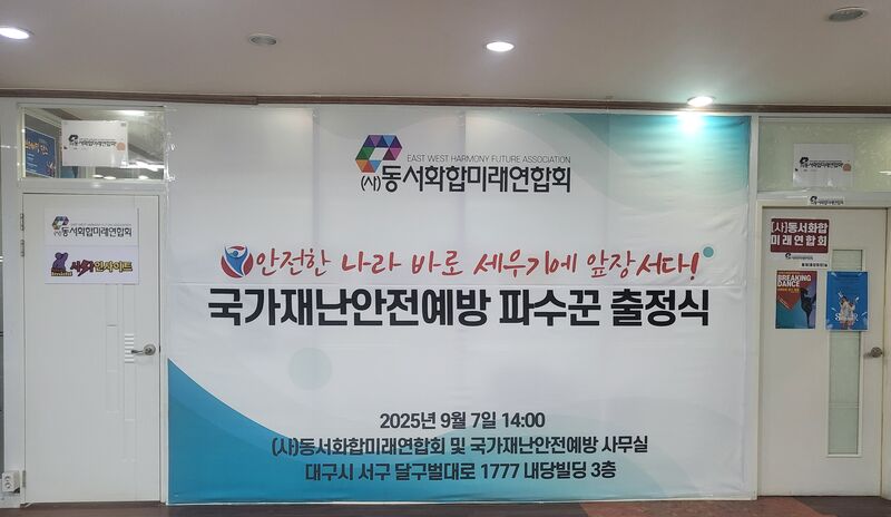 사단법인 동서화합미래연합회 산하 '국가재난안전 예방 국민 파수꾼(국재안파)'는 오는 9월 7일(일) 오후 2시, 대구 서구 달구벌대로 1777 내당빌딩 3층에서 출정식을 열고 공식 활동을 시작한다.