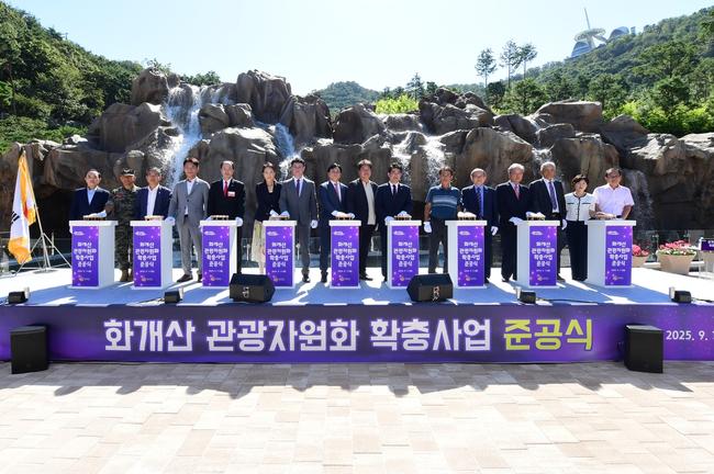 이번 화개산 관광자원화 확충사업은 총사업비 57억 4천만 원을 투입해 물의 정원, 소계류, 폭포, 경관조명 등을 새롭게 조성했다. 이를 통해 정원의 매력을 한층 강화했으며, 재원은 국비 80%, 시비 10%, 군비 10%로 마련됐다.