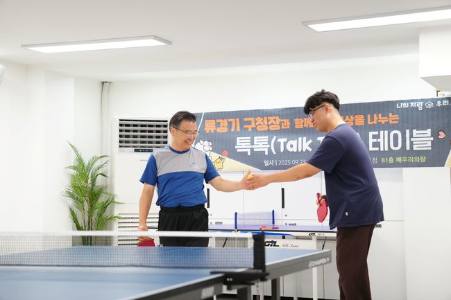 중랑구, 청년과 탁구로 소통하는 ‘톡톡테이블’ 열어 - 청년 소모임 ‘동네친구 커뮤니티’ 일환으로 진행 - 류경기 구청장 직접 참여해 현장 열기 더해 - 청년 소통·교류 공간 ‘중랑청년청’ 1주년 맞아