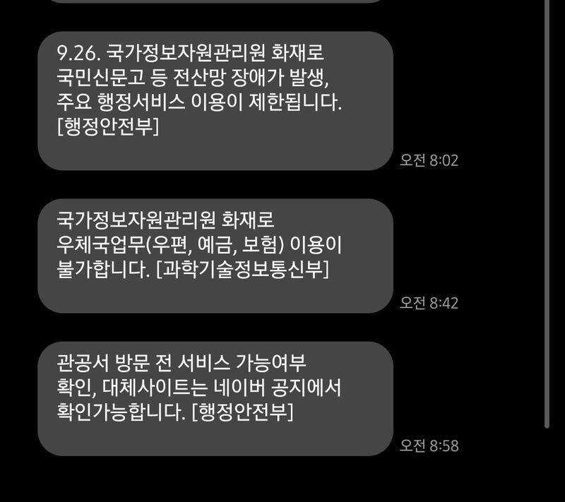 지난 9월 26일 저녁, 대전 유성구 화암동에 위치한 국가정보자원관리원(국정자원) 본원에서 대형 화재가 발생했다. 이곳은 중앙정부와 지방자치단체의 핵심 전산시스템이 집약된 시설로, 화재 직후 국민 생활과 직결된 온라인 서비스가 대규모로 마비됐다.