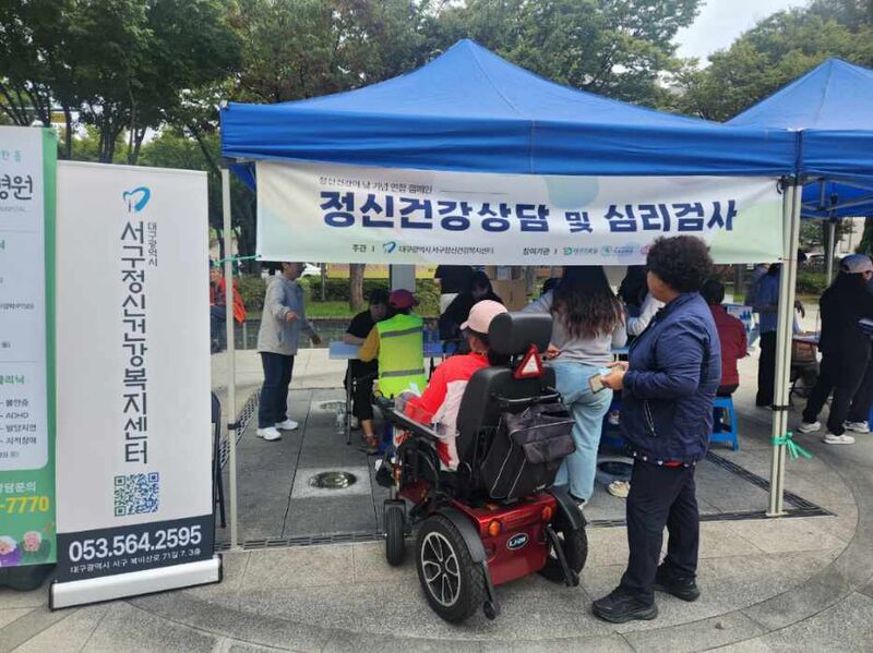 대구 서구보건소(소장 박미영)는 세계 정신건강의 날(10월 10일)을 기념해 10월 15일 평리공원에서 정신건강 인식 개선을 위한 ‘서구 연합 정신건강 캠페인’을 진행했다.