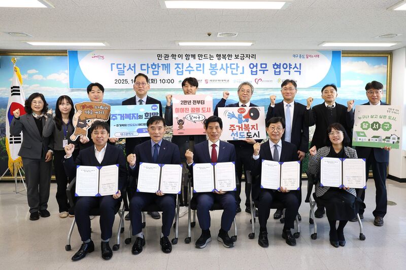 달서구는 민·관·학의 전문성과 자원을 유기적으로 연계해 단편적 지원을 넘어서는 지속가능한 통합 주거복지 서비스를 구축한다는 목표다.