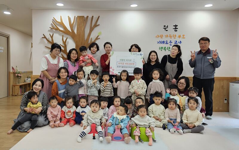 대구 동구 안심2동에 소재 프라디움도토리어린이집(원장 전옥희)은 지난 4일, 원아들과 아파트 주민들이 함께 참여한 바자회를 통해 얻은 수익금 45만원을 동 행정복지센터에 기탁했다.