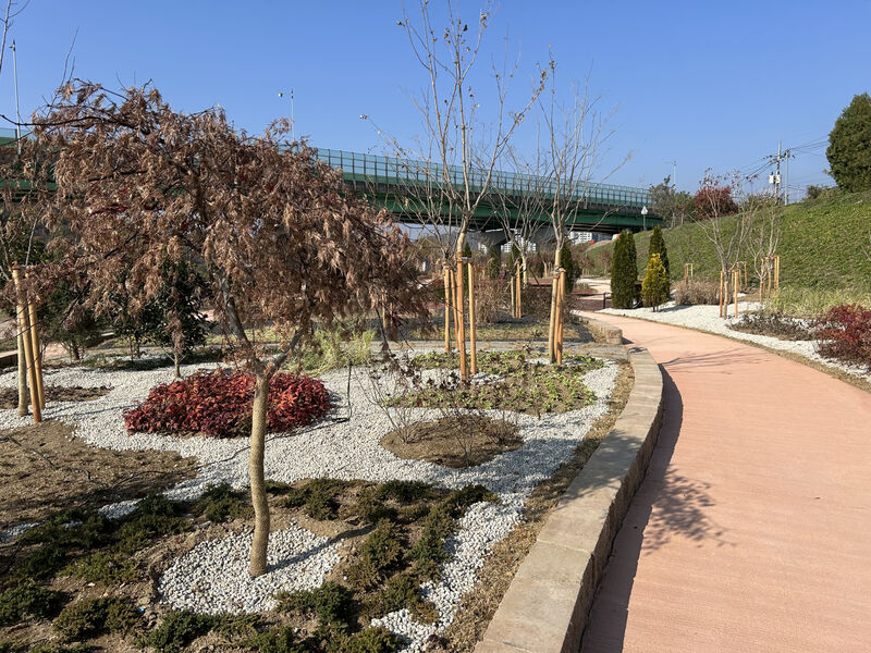 자생수종인 산수유, 산딸나무, 팥꽃나무, 노루오줌, 수크령, 털머위 등 34종을 포함해 블루아이스 등 교목 19종 258주, 꽝꽝나무 등 관목 33종 4천644주, 가우라 등 53종 2만3천770본을 식재했으며, 파고라, 의자, 목재데크 등 휴게·편의시설을 설치했다.