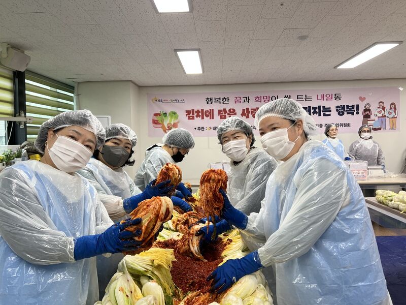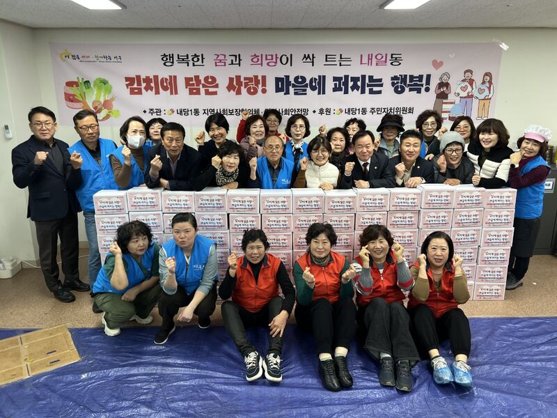 이번 행사는 어려운 이웃 300세대에 직접 담근 김장김치(5kg)를 전달하는 자리로, 특히 올해는 내당1동 주민자치위원회와 지역사회보장협의체 및 민간사회안전망이 함께 협력하여 행사의 의미를 더욱 깊게 했다.