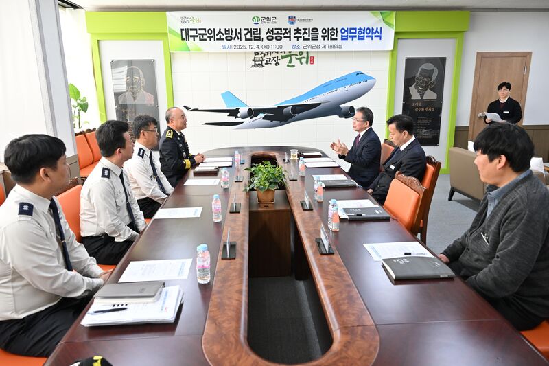 군위군(군수 김진열)은 4일 대구소방안전본부와 대구군위소방서 건립 사업의 성공적 추진을 위한 업무협약을 체결했고 밝혔다. 이번 협약은 김진열 군위군수와 엄준욱 대구소방안전본부장을 비롯한 양 기관 관계자들 8명이 참석한 가운데 군위군청에서 개최되었다.