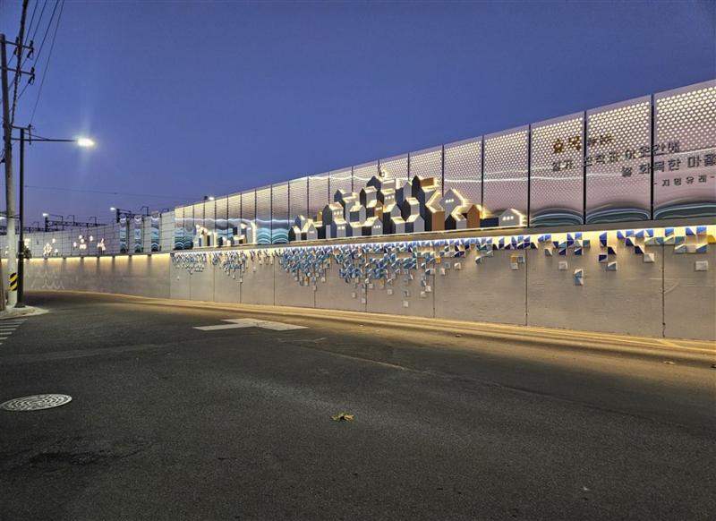 대구 동구청(구청장 윤석준)은 최근 효목지하차도에서 효목네거리 방향으로 설치되어 있는 옹벽 및 방음벽에 공공디자인을 접목한 경관개선사업을 마무리했다.