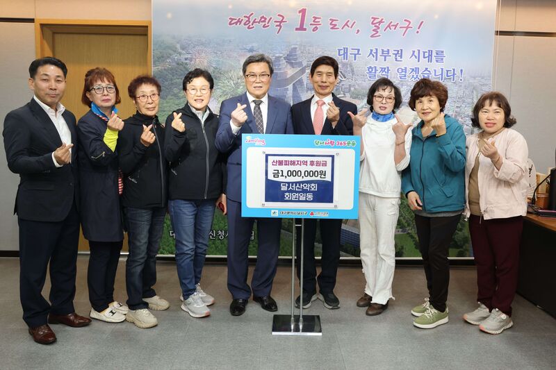 이번 후원금은 달서산악회 소속 회원들이 자발적으로 모금한 성금으로, 최근 산불로 큰 피해를 입은 경북 지역 주민들의 생계 회복과 재난 극복을 돕기 위한 뜻에서 마련되었다.