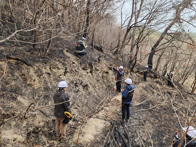 지난 3월 대형 산불피해지 산사태 긴급진단(울산광역시 울주군) 모습 (산림청 제공)