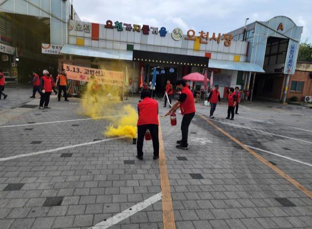 지난 5월 1일 실시한 화재 훈련에는 오천시장 상인회, 지역 의용소방대, 포항 오천 남구소방서 등 50여 명이 참가했다. 이 날 참가자들은 실제 화재 상황을 가상해 화재 신고, 소화전 연결 및 소화, 소방차 진입, 소방차 살수 실습 등 현장감 있게 훈련을 진행했다.