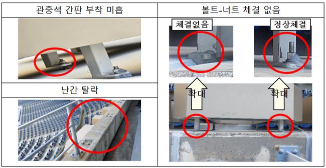 또한 추가적인 탈락이 우려되는 부착물이나 균열이 발견된 구조물 등에 대한 안전조치가 미흡해 단순 육안점검이 아닌 장비를 활용한 면밀한 점검을 요구했다고 밝혔다.