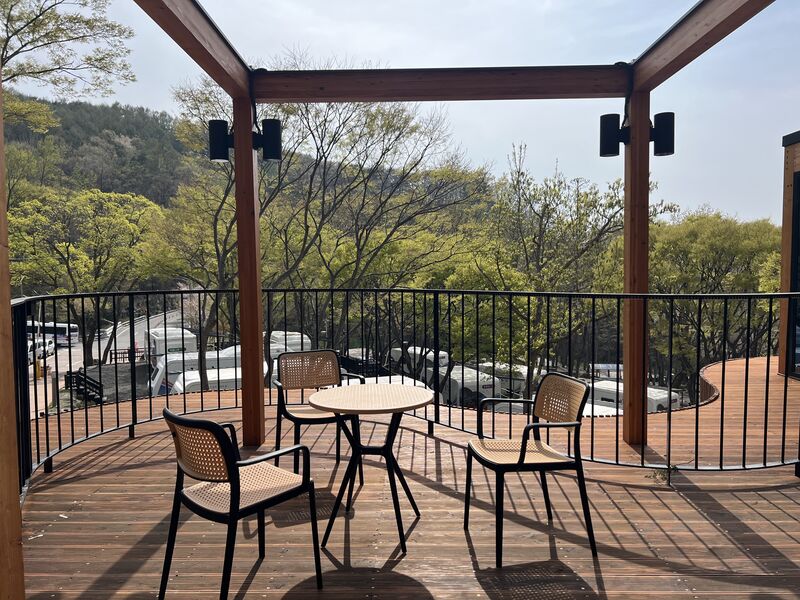 비슬산자연휴양림 '비슬책방' 전경 사진 (테라스). 달성군 제공.