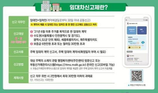 `주택 임대차 계약 신고제`는 임대차 계약 체결 후 30일 이내에 계약 내용을 신고하도록 의무화한 제도로 주택 임대차 시장의 투명성을 높이고 임차인의 권리보호를 위해 2021년 6월부터 시행됐다.