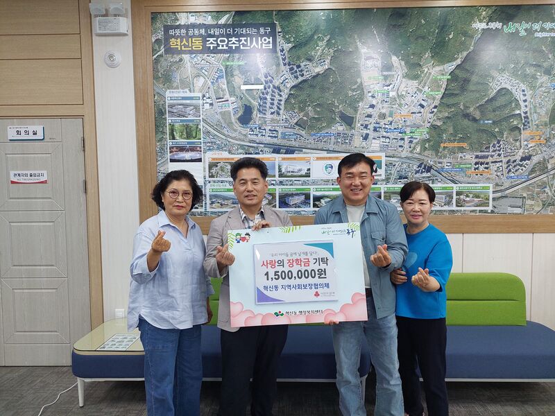 이양화 혁신동장은 “어려운 여건 속에서도 자신의 꿈을 향해 나아가는 청소년들을 위해 따뜻한 나눔을 실천해 주신 혁신동 지역사회보장협의체에 깊이 감사드린다.”며 “앞으로도 지역사회와 함께하는 나눔 문화 확산을 위해 지속적인 협력을 기대한다.”고 말했다.