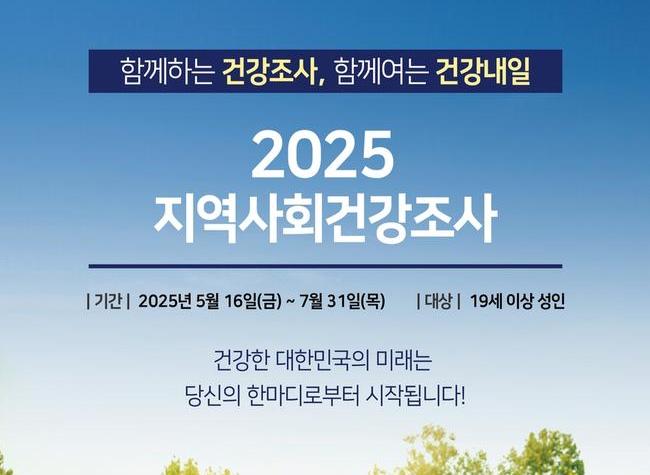 인천 미추홀구(구청장 이영훈)는 오는 16일부터 7월 31일까지 관내 19세 이상 성인 902명을 대상으로 `2025년도 지역사회 건강 조사`를 실시한다.