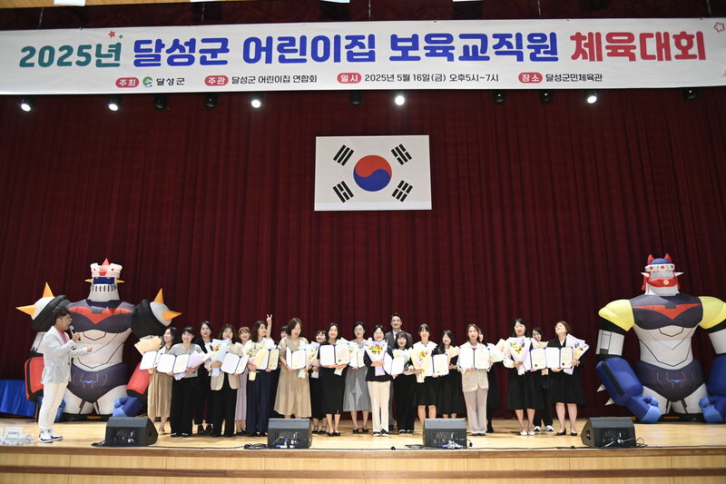 달성군, 보육교직원 체육대회 개최 - 스승의 날, 교실 아닌 체육관에서 웃음꽃…보육교직원들 열띤 호응 - 달성군, 체육대회로 하나 된 달성군 보육 현장 - ‘육인칠각’부터 색판 뒤집기까지, 스트레스 날린 힐링 한마당