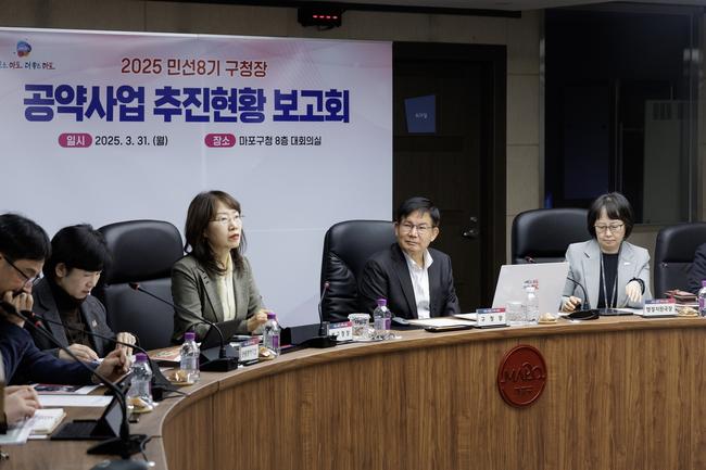 마포구는 민선 8기 `새로운 마포, 더 좋은 마포`를 비전으로 소통마포, 동행마포, 상생마포, 매력마포, 안전마포 분야로 나눠 37개 공약사업을 추진하고 있으며, 2025년 5월 기준으로 25개는 이미 완료했다.