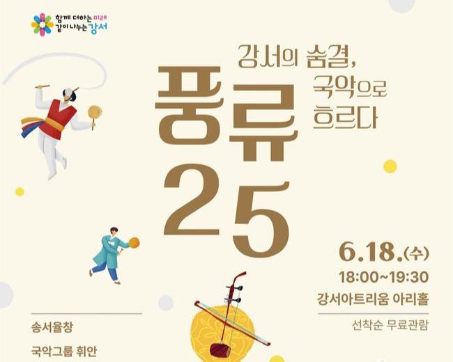 서울 강서구(구청장 진교훈)는 오는 18일 오후 6시, 강서아트리움 2층 공연장(아리홀)에서 전통문화예술 공연 `풍류25`를 개최한다고 밝혔다.