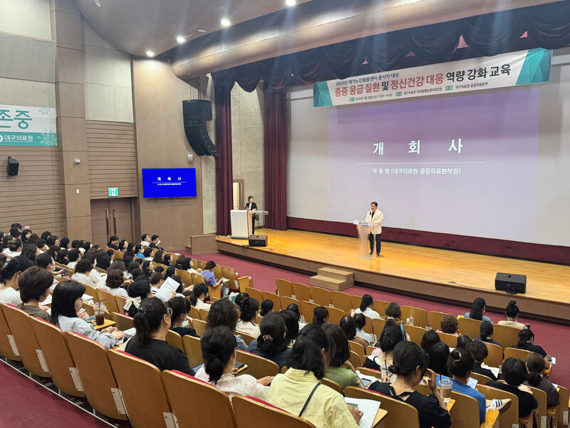 2025년 재가노인돌봄센터 종사자 대상 중증 응급 질환 및 정신건강 대응 역량 강화 교육 시행 - 5.28.(수), 13:00~14:30, 대구의료원 라파엘웰빙센터 대강당 - 관내 돌봄 서비스 제공 종사자의 전문성 향상을 위한 역량 강화 교육 시행