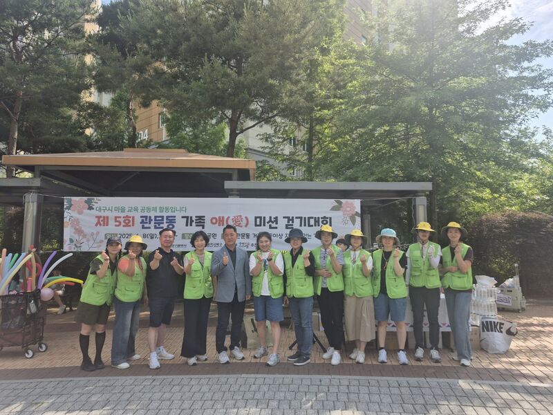 대구 북구 관문동 우리마을 교육나눔 추진위원회(위원장 심정하)는 지난 6월 8일 일요일 사수동 한강공원에서「제5회 관문동 가족애(愛) 미션 걷기대회」를 개최하였다.