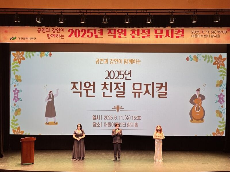 대구 북구청(청장 배광식)은 지난 11일 어울아트센터 함지홀에서 민원 응대직원 200여명을 대상으로 “2025년 직원 친절 뮤지컬”을 개최했다.