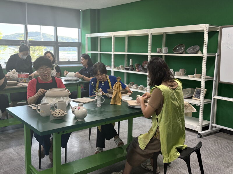 올해 상반기 공작실을 대관한 도자기 동호회 ‘흙내음’. 회원들이 한자리에 모여 도예 작업에 열중하고 있다. 달성군 제공.