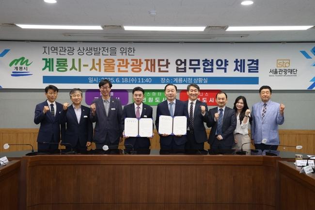 서울관광재단(대표이사 길기연)과 계룡시(시장 이응우)가 6월 18일(수) 계룡시청에서 상호 관광 활성화를 위한 업무협약(MOU)를 체결했다.