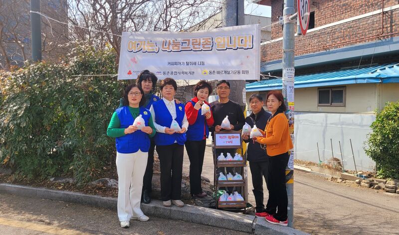 - 동촌동종합복지관(관장 정병주)과 동촌동 바르게살기 위원회(회장 김차순)는 커피찌꺼기로 만든 탈취제를 배부하고 ‘나눔 그린존’ 운영을 시작한다. 동구 제공.