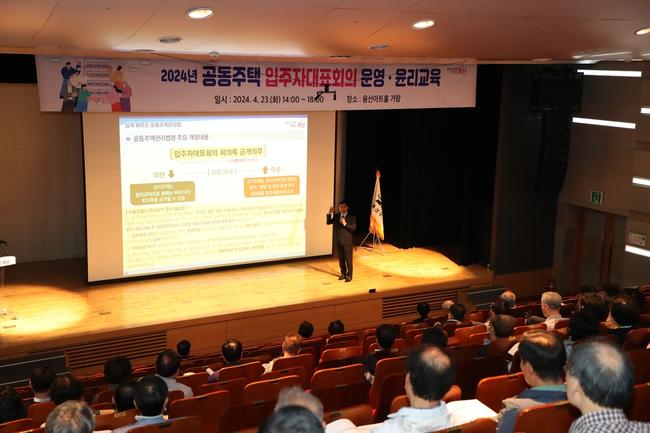 서울 용산구(구청장 박희영)가 오는 25일, 용산구청 대회의실에서 `2025년 공동주택 입주자대표회의 운영 및 윤리 교육`을 실시한다.