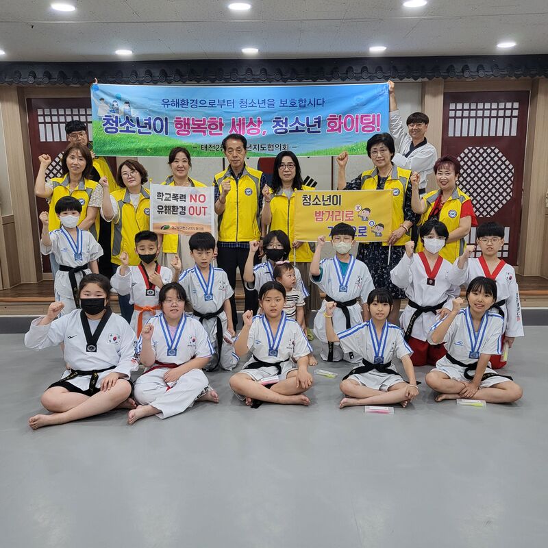 매달 청소년지도협의회와 태전2동 행정복지센터가 함께 캠페인을 진행하고 있으며, 이번 달엔 특별히 청소년들이 많이 이용하는 관내 합기도 도장에 방문하여 홍보물품을 배부하고 학생들을 지도 및 선도하였다.
