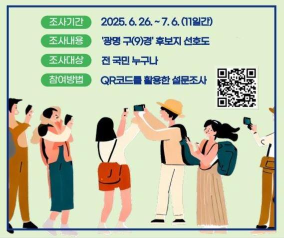 시는 6월 26일부터 7월 6일까지 11일간 `광명 구(9)경` 선정을 위한 후보지 선호도 조사를 실시한다.