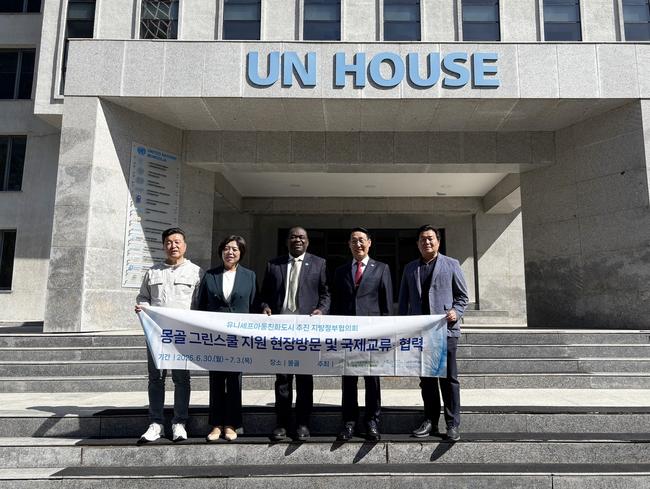 신계용 과천시장은 몽골 울란바토르에 위치한 유니세프 몽골사무소를 찾아 간담회에 참석하고, 아동 권리 실현을 위한 정책 공유 및 향후 협력 방안에 대해 논의했다. 이어 울란바토르에 있는 `74번 학교`를 방문해 그린스쿨 프로그램이 적용된 교육환경을 점검하고, 기후변화 대응 및 교육환경 격차 해소의 의미를 되새기며 현지 학생들과 함께 나무심기 활동에도 참여했다.