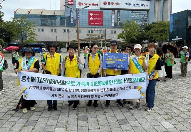 부평구(구청장 차준택)는 지난 4일 재난 취약계층을 위한 `풍수해·지진재해보험 선물하기 홍보 캠페인`을 진행했다.