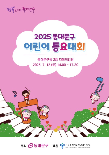 `2025 동대문구 어린이동요대회`가 오는 12일 오후 2시 동대문구청 다목적강당에서 열릴 예정이다‘2025 동대문구 어린이동요대회’가 7월 12일(토) 오후 2시 동대문구청 2층 다목적강당에서 개최된다. 이번 대회는 동대문구가 주최하고 서울특별시동부교육지원청이 후원하며, 지역 초등학생들의 음악적 재능을 키우는 대표적인 문화 행사로 자리잡고 있다.