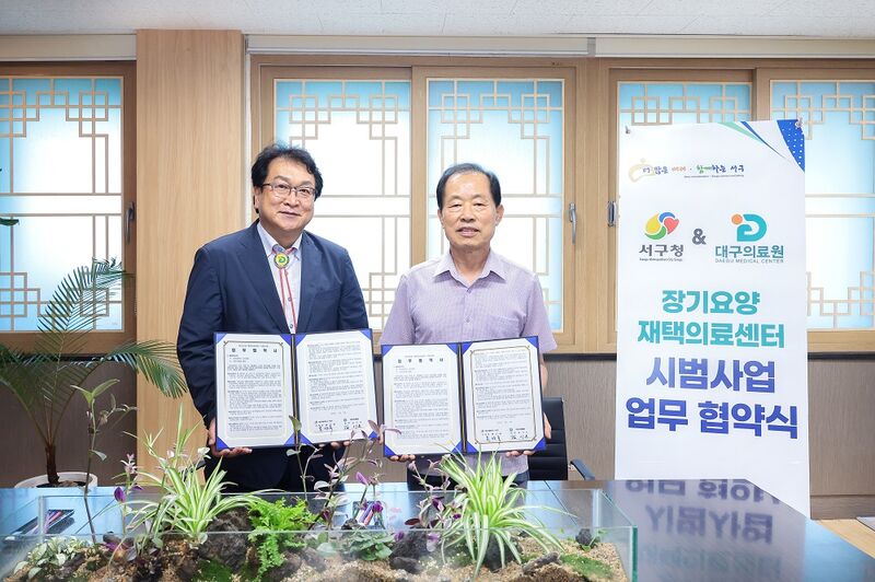 대구 서구(구청장 류한국)는 7월 8일, 대구의료원(원장 김시오), 참좋은연합의원(원장 박계원)과 장기요양 재택의료센터 시범 사업 업무협약을 체결했다고 밝혔다.