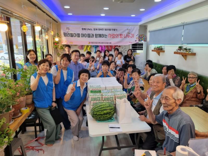 이번 나눔은 아이들이 지역사회보장협의체 워원들과 함께 롤케이크를 만들고 포장하는 전 과정에 참여함으로써, 나눔의 의미를 체험하고 이웃에 대한 관심을 실천할 수 있도록 마련됐다. 특히 이날은 홀몸 어르신 20명을 직접 초청해, 아이들이 만든 롤케이크와 함께 시원한 수박과 요구르트를 나누며 소통의 시간도 가졌다.